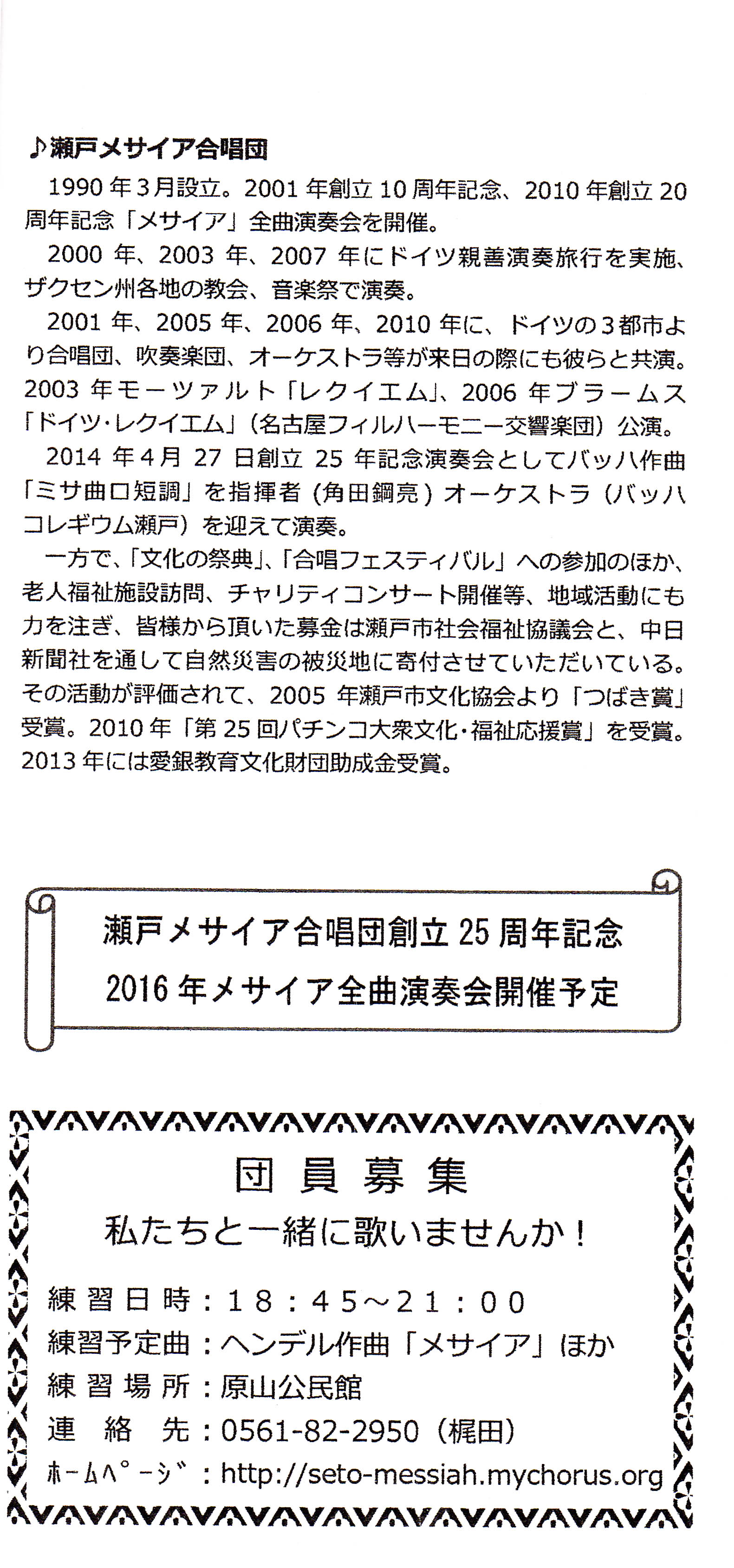 瀬戸メサイア合唱団情報ページ
