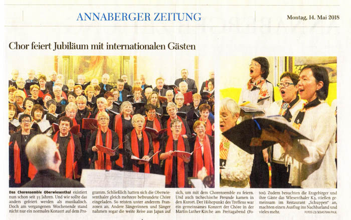 Chorensemble Oberwiesenthal 創立35周年演奏会 参加 (2018・5・8~15訪独